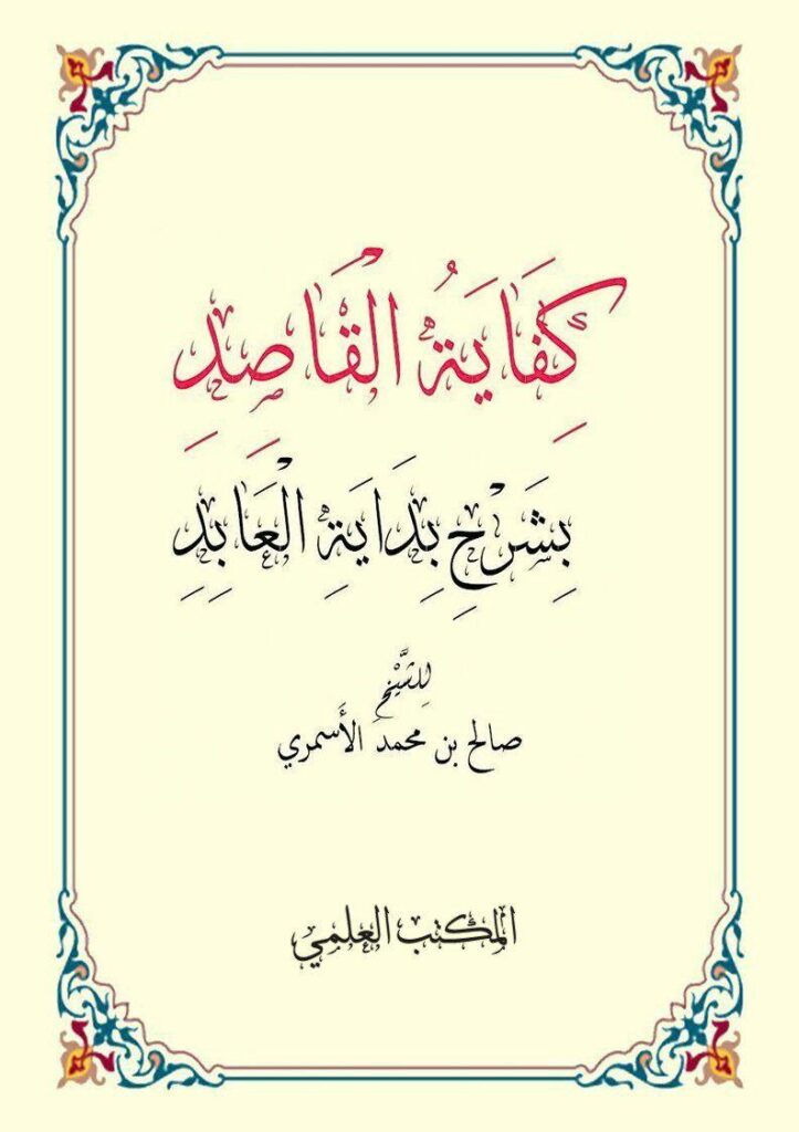وقد مَنَّ المَولى سُبحانه على عُبيدِه الخادِم بدَرسِه ومُدارَستِه غير ما مَرَّةٍ،كان الانتِهاءُ مِن آخرِها سنةَ(1440هـ) إِملاءً في مَجالِسَ،أَتْحَفنِي بتَقييدها أَخونا الفاضل/سعد الدّوسري،وقام على طَبعِها فاضلان مِن دِيارِ نجدٍ الحنبلية هُما: سعد ومحمد العامريين ،ثُمّ اعتَنَى بها تَنسيقا وفَهرسَةً -وأَضافَ المَتنَ- الفاضل/ محمد العمير…مع تَقويم مواضِع مِنه رَفعها إِليّ..وهو هذا الشرح المَوسوم ب«كِفاية القاصِد بشرح بِداية العابِد».
